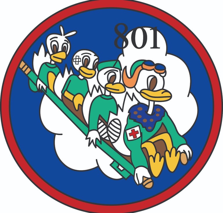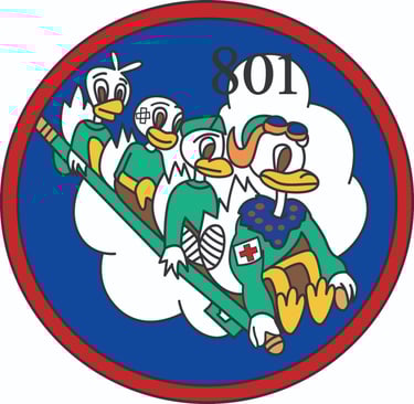 Crews typically included a nurse, medical corpsman, or flight surgeon from the 801st, or a hospital corpsman or flight surgeon. The first women to set foot on Guadalcanal, New Georgia and many other islands after the war started were flight nurses. From January 1943 to October 1944, the 801st evacuated more that 40,000 patients from forward areas to Hollandra, New Guinea, Morottie, Biak, Philippines, Leyte, Manila, Mindanao and Cebu. In one ten day period in March, 1944, the 801st evacuated over 1800 patients to Guadalcanal and Espiritu Santo. From October 1944 to April 1945, nearly 15,000 patients were transported from the Philippines, the East Indies, and Palau.